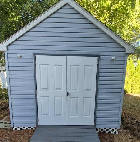 Before soft washing, this vinyl shed was covered in green grime. Using our Bright Brothers Soft Wash Process, we were able to make it CLEEEN again!