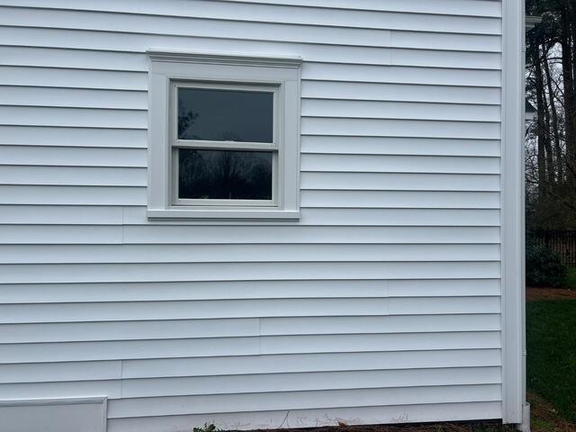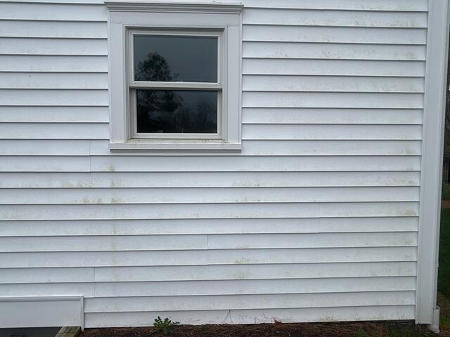 Before soft washing, the cedar siding had started to turn gray due to algae growth. After the soft wash, it is now clean and restored to its original color.